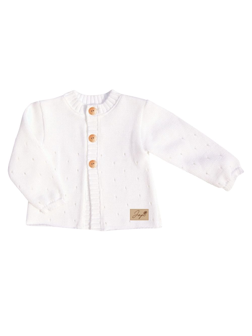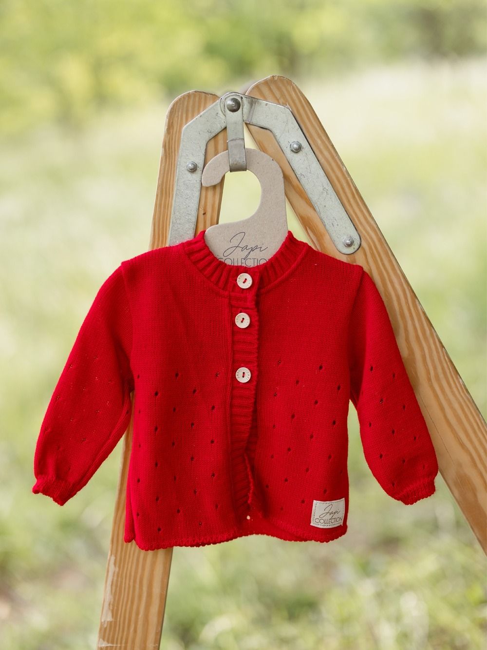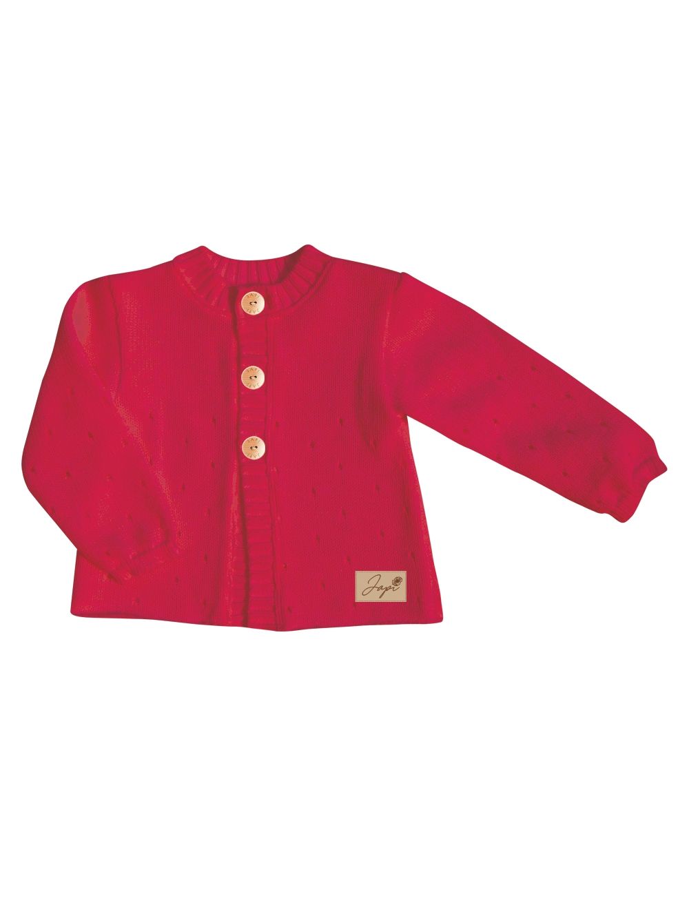 The girls' baby sweater from the Cherry collection is a beautiful accessory. Suitable not only for clothes from this collection, but it also combines perfectly with other clothes. The sweater is available in white and red. It is finely knitted and has beautiful details. Tiny eyelets and wooden buttons. This sweater is available in our sizes from 62 to 86. It beautifully enlivens clothes and harmonizes beautifully with cherries from this collection. Suitable for colder days and festive occasions.
