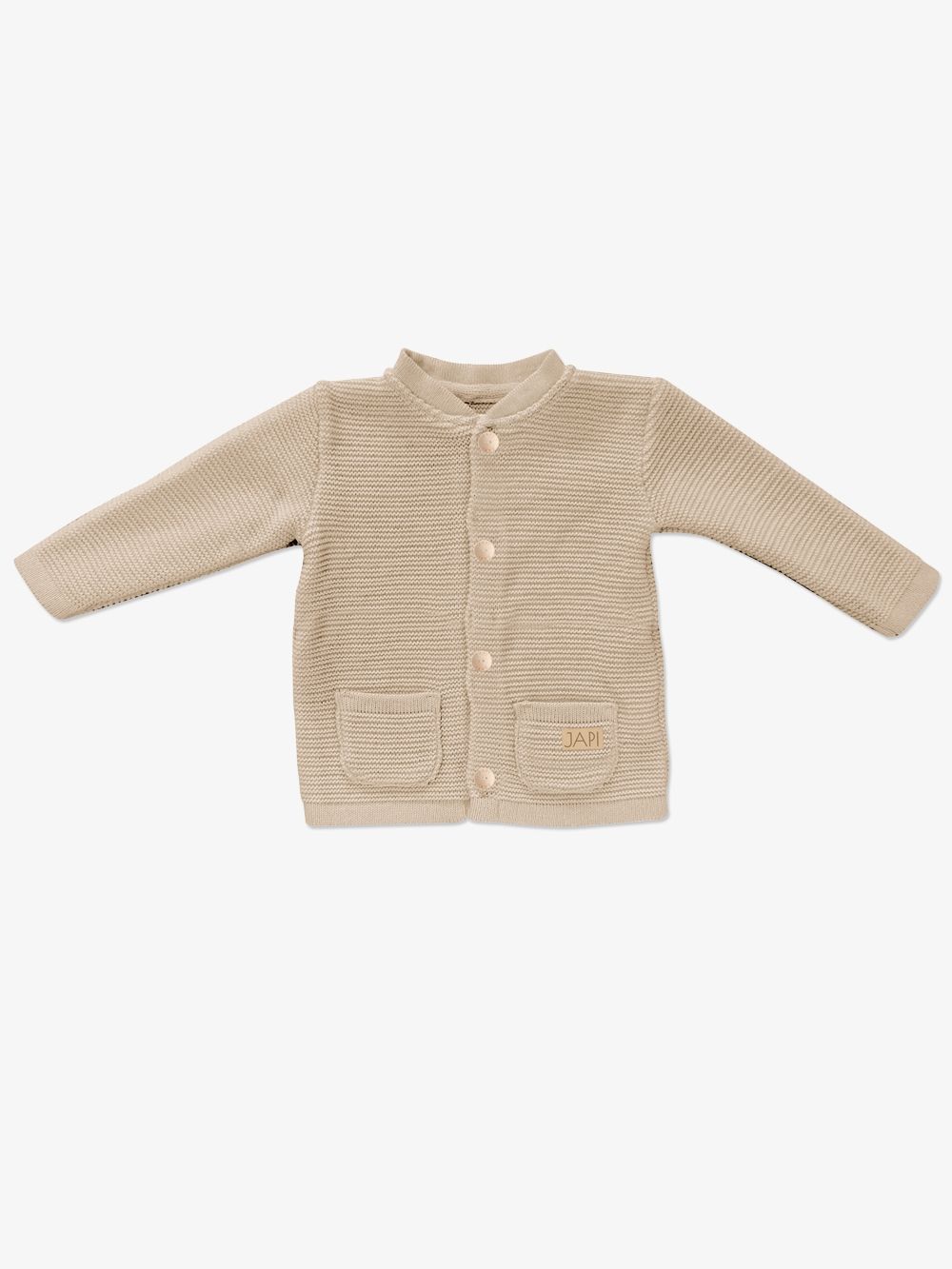 Children's sweater for the little ones with nice pockets. The sweater is knitted with a delicate pattern and has wooden buttons along the entire length. The front pockets make it a nice piece. You can use it for everyday wear. On colder days, it will serve as an upper layer of children's clothing.