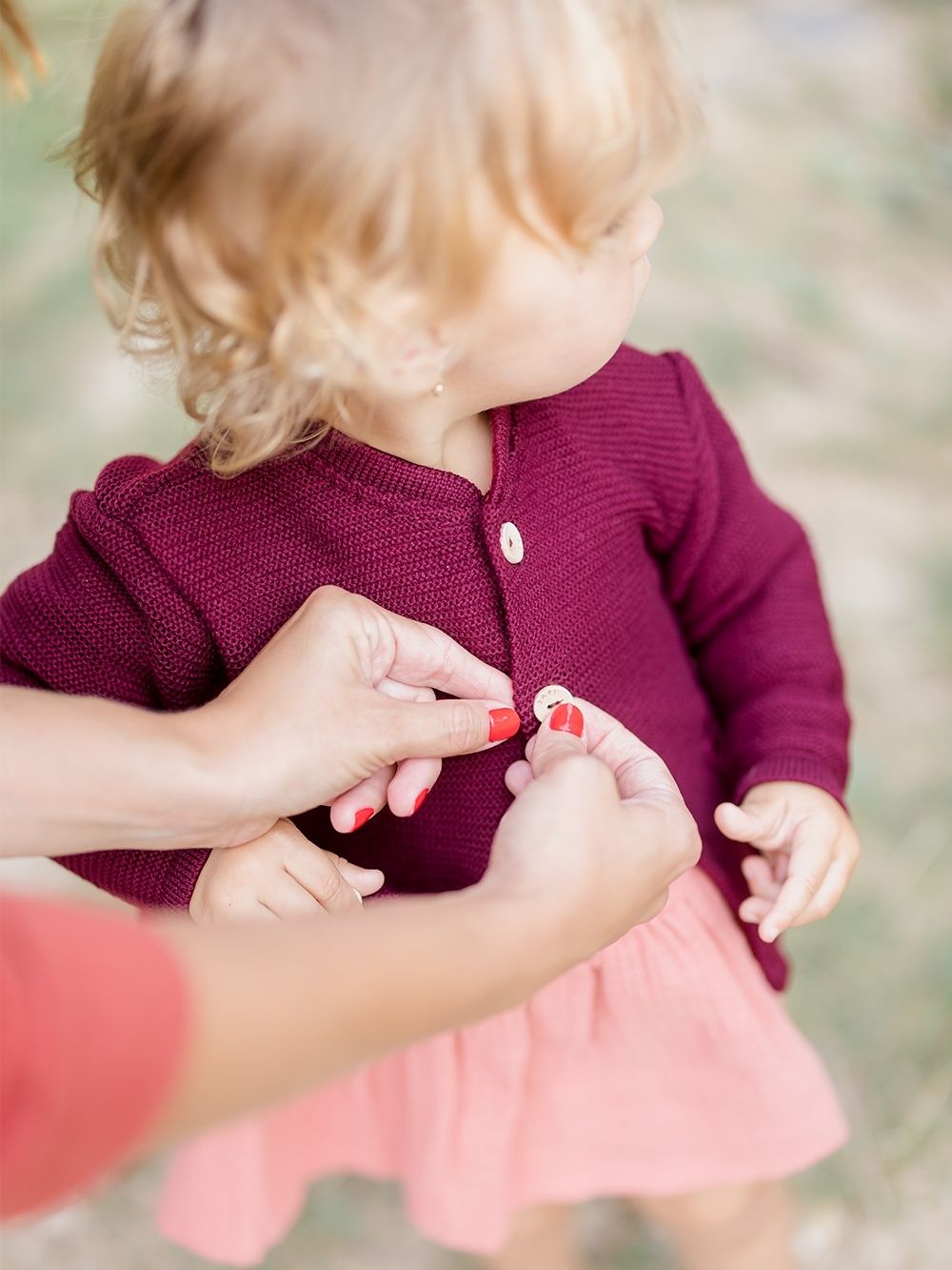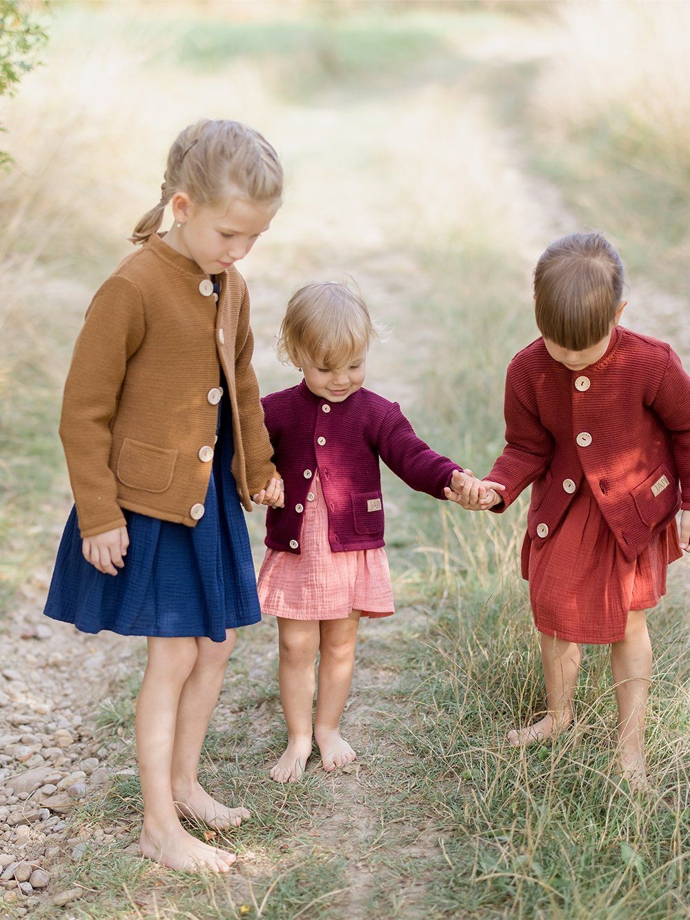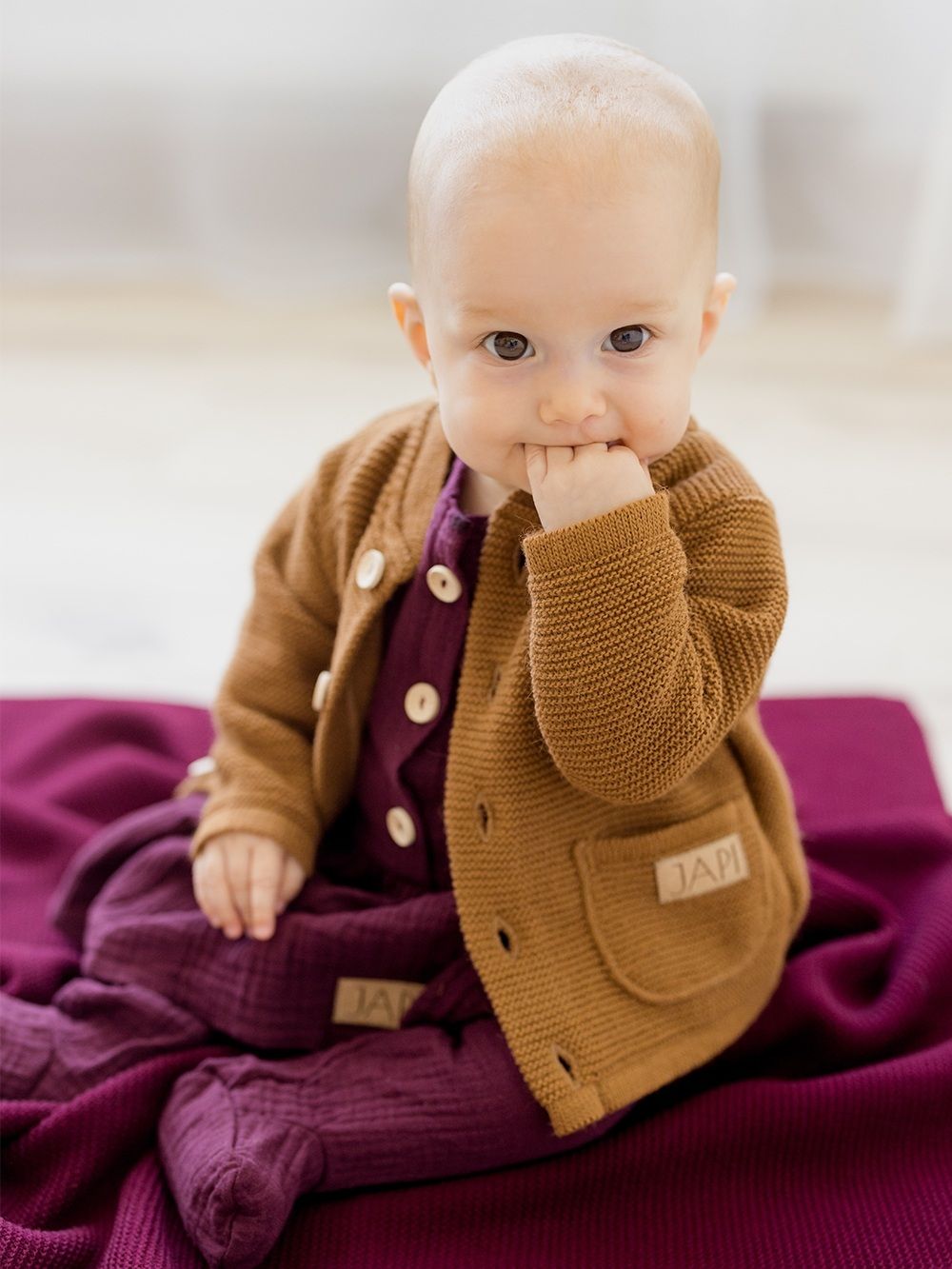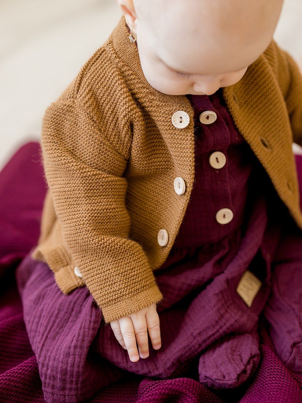 The PURE collection is colorfully and stylishly complemented by an infant sweater. Beautiful earthy colors, wooden buttons, comfortable design and practical pockets make it a companion for colder days. It is suitable for everyday wear and as part of a festive outfit for the little ones.