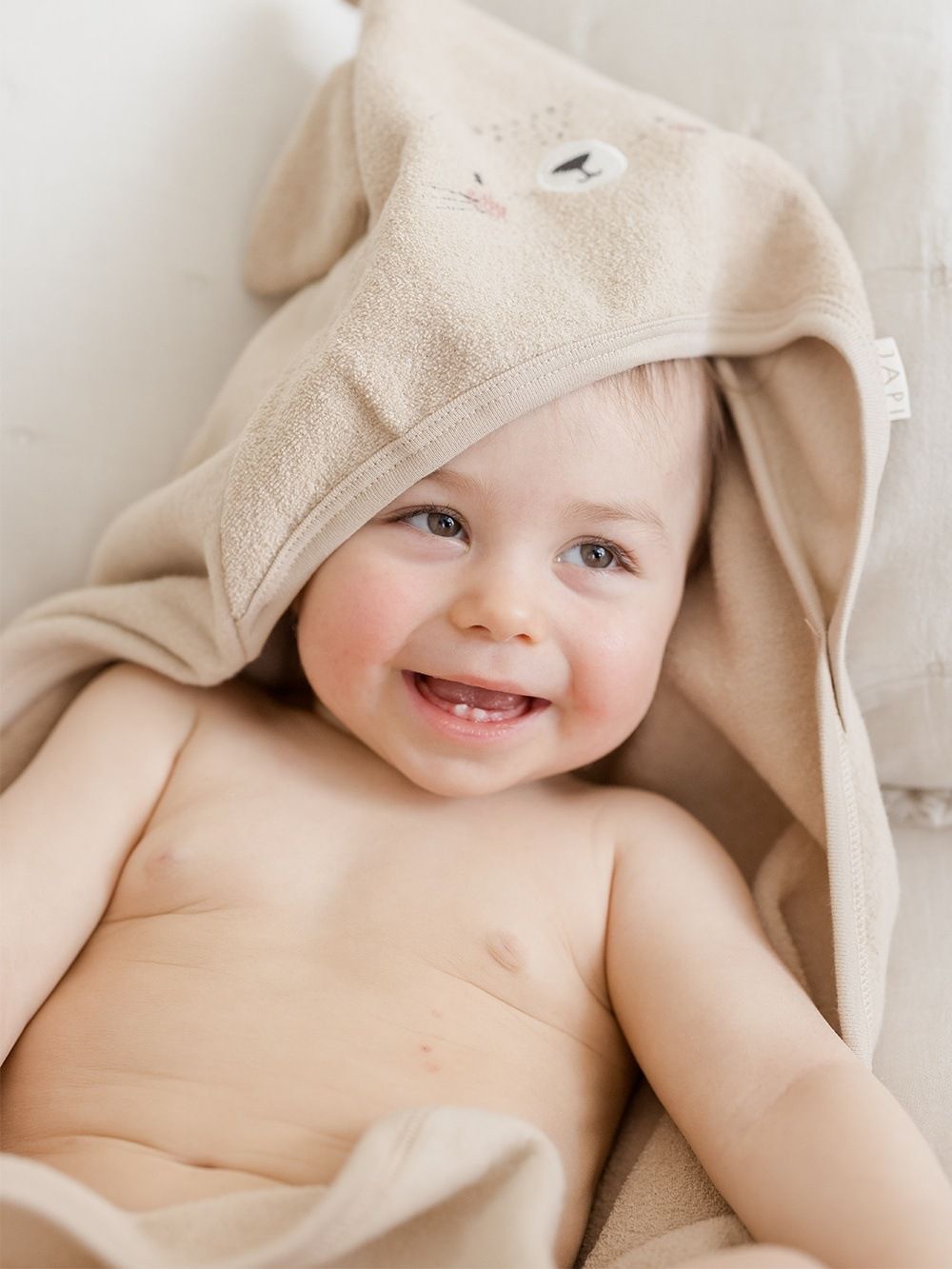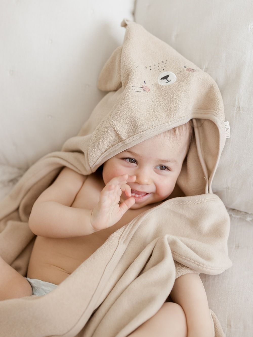 Give this towel in a package as a gift for a baby, and you will surely please everyone. You can find it in neutral beige.
