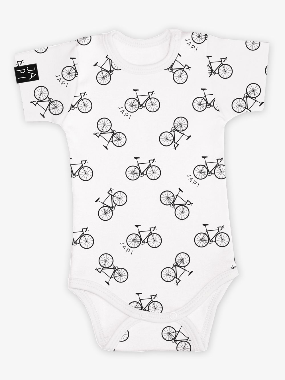 Comfortable and proven cut for boys' clothing. Certified material and our own all-over print of bicycles. The bodysuits have a press-stud fastening between the legs for diapers. The neckline also fastens with press-studs for easy dressing. It maintains its shape and does not fall off the shoulders.