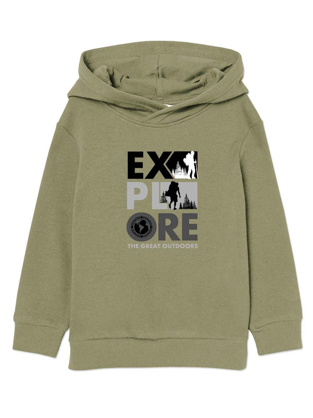 This boys' hoodie from the EXPLORER collection is designed for kids who love comfort and discovering the world around them. The hoodie features a practical hood and ribbed cuffs, ensuring a comfortable fit and better grip. The stylish outdoor-themed print makes it a favorite piece for every little adventurer. This boys’ sweatshirt is ideal for school, trips, and everyday wear. Thanks to its quality construction and strong seams, it can handle even the most active days. It pairs perfectly with sweatpants from the EXPLORER collection. Give your child a functional and stylish piece for everyday adventures.