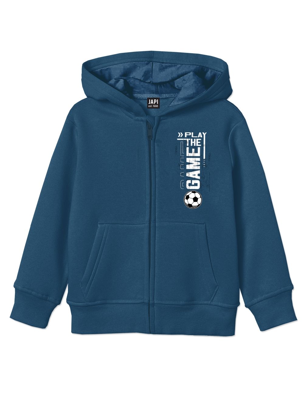 The boys' sweatshirt from the GAME collection is a perfect piece for colder days. Made of high-quality cotton with a warm inner layer, it provides maximum warmth and comfort. The practical cut with a hood, ribbed cuffs, and a kangaroo pocket ensures everyday wearing comfort. A sporty print gives the sweatshirt a modern look that appeals to every young game fan. This warm boys' hoodie is ideal for leisure time, walks, and school. Durable construction and quality stitching ensure a long lifespan even with frequent washing. The sweatshirt pairs perfectly with sweatpants from the same collection. Give your child both style and warmth in one piece.
