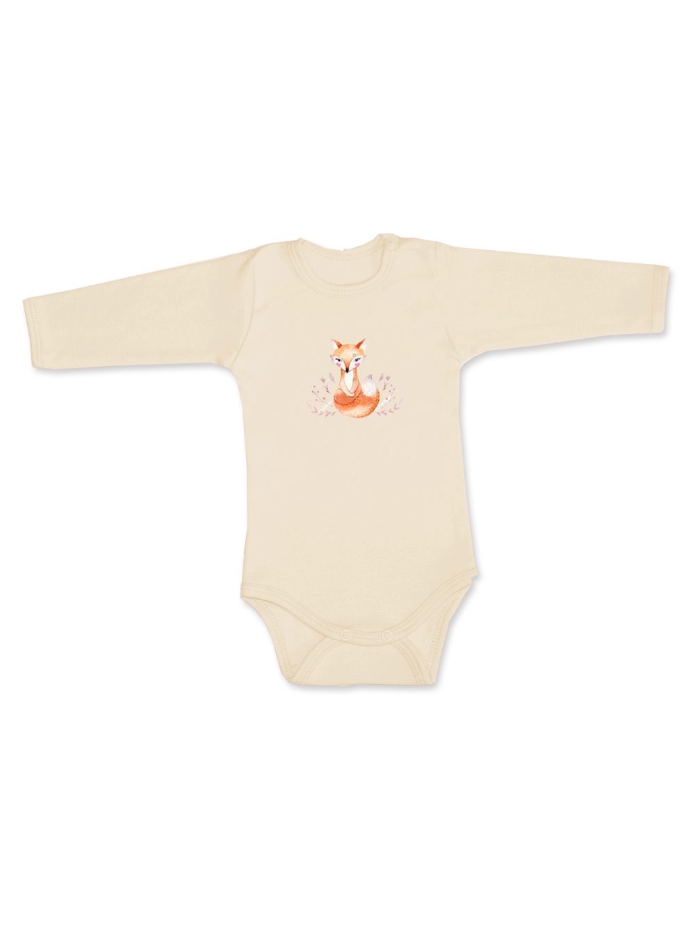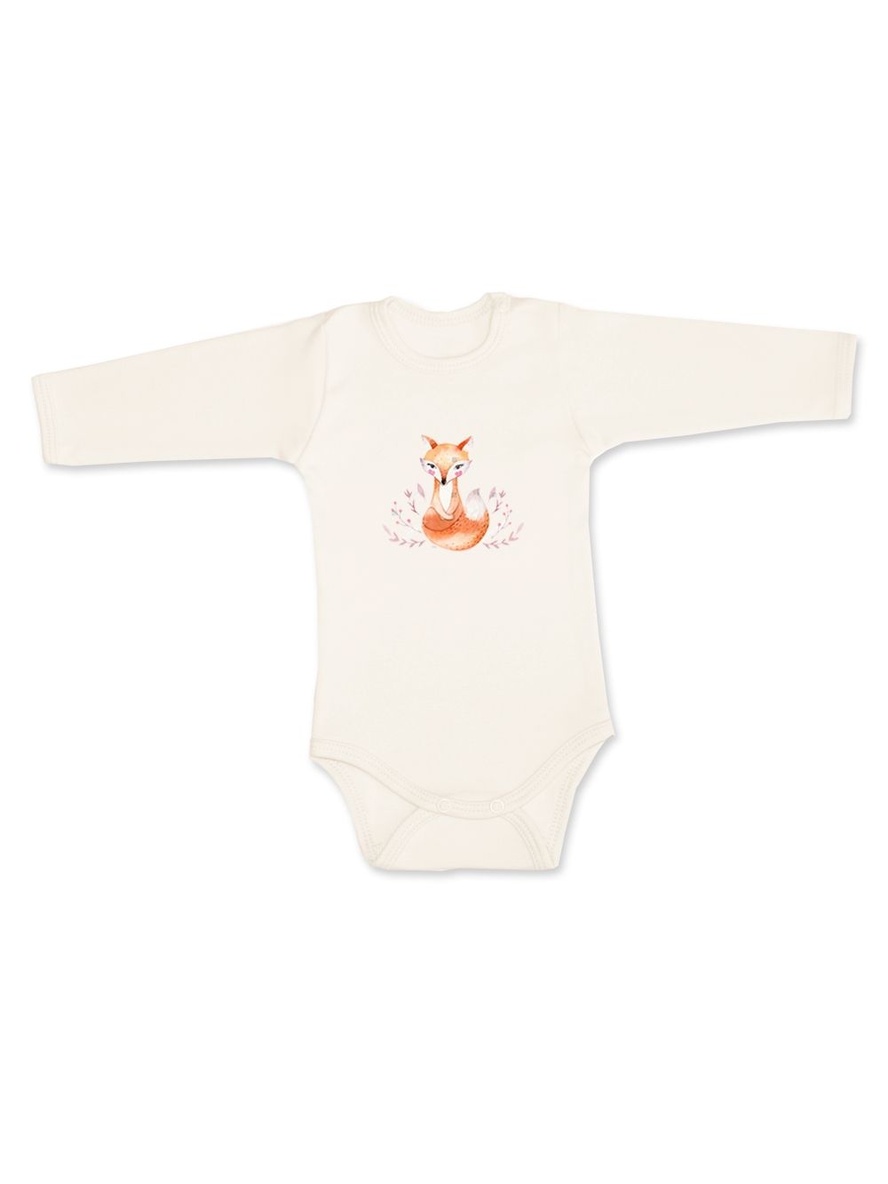 This comfortable baby bodysuit with long sleeves and a fox design is an essential part of every baby’s wardrobe. Made from soft and breathable cotton, it’s perfect for sensitive baby skin and ensures all-day comfort. The practical design with snap buttons at the bottom makes diaper changing easier, while the stretchy neckline allows easy dressing over the head. A cute fox print on the chest adds a playful and nature-inspired touch. Available in beige, cream, and pink, it pairs easily with other clothing items. Suitable for year-round wear – as a base layer or worn alone.