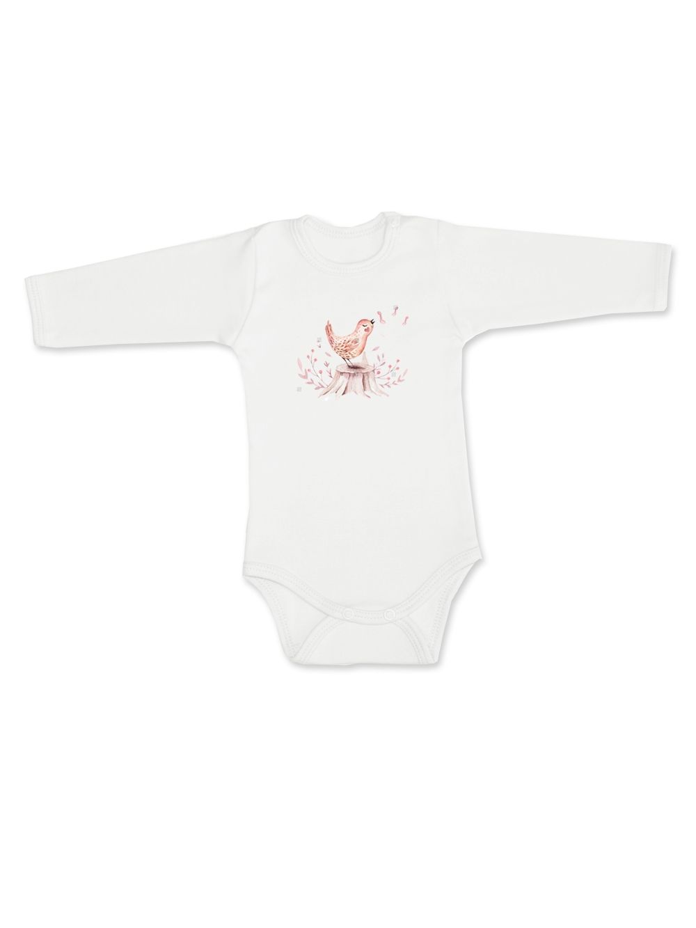 The MUSIC baby bodysuit with long sleeves is a practical and comfortable piece that should not be missing from a baby’s wardrobe. Made from soft and pleasant cotton material, it is gentle on the baby’s skin and provides maximum comfort throughout the day. The front is decorated with a cute print of a singing bird, adding a playful and tender touch. The bodysuit features snap fasteners between the legs, making diaper changes and dressing easier. Long sleeves provide warmth on cooler days, making it ideal for spring, autumn, and winter. Available in three beautiful colors – beige, white, and raspberry pink – it pairs easily with footed pants, trousers, or sweatpants. A perfect everyday essential and also a lovely gift for a baby.