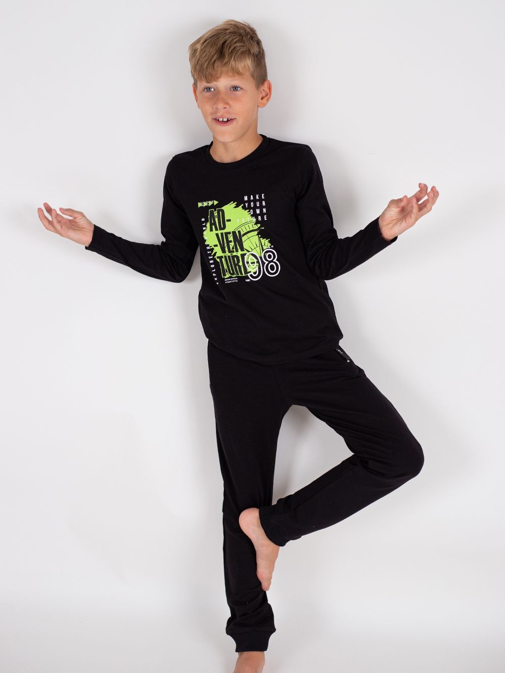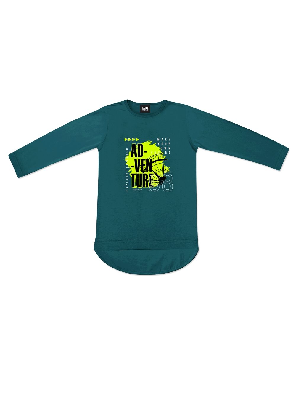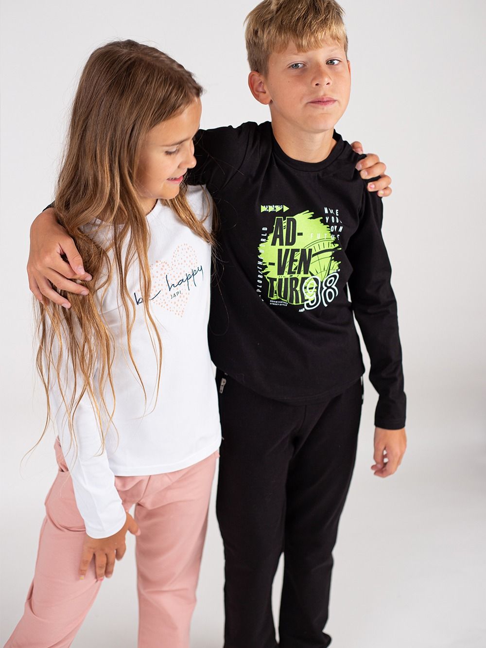 Modern boy's long sleeve t-shirt, perfect for little adventurers. The t-shirt is available in three colors - black, blue, and green. On the front, there is a stylish "Adventure" print, adding to the t-shirt's appeal. Made from high-quality and comfortable material, ensuring comfort throughout the day. Great for everyday wear and special occasions. A perfect piece for active boys.
