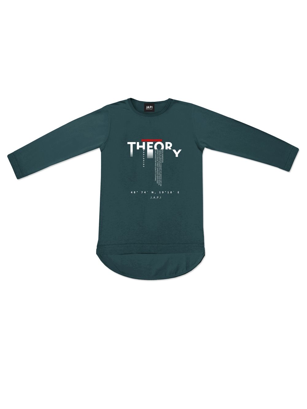 Stylish boy's long sleeve t-shirt for young theorists. The t-shirt is available in three colors - black, grey, and dark green. On the front, there is a modern "Theory" print, giving the t-shirt a sophisticated look. Made from high-quality material, providing maximum comfort and durability. Suitable for everyday wear and special occasions. A perfect piece for boys who love to think.