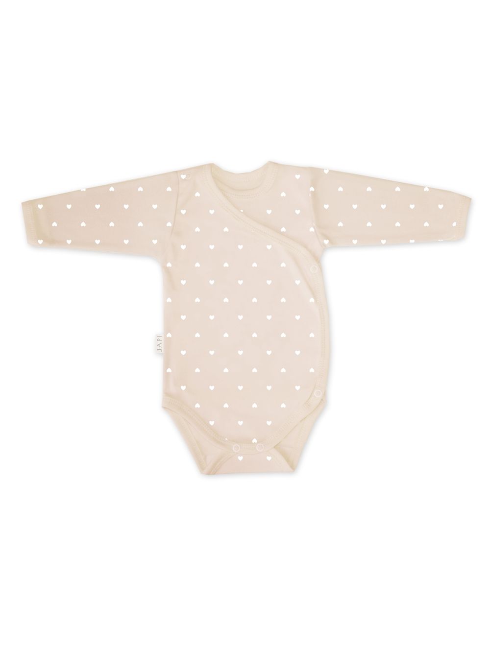 The overlapping baby long-sleeve bodysuit MINI offers even greater comfort during dressing thanks to the practical side fastening. The material is equally soft and breathable, ensuring comfort for your baby throughout the day. Soft colors and heart prints give this piece a gentle look.