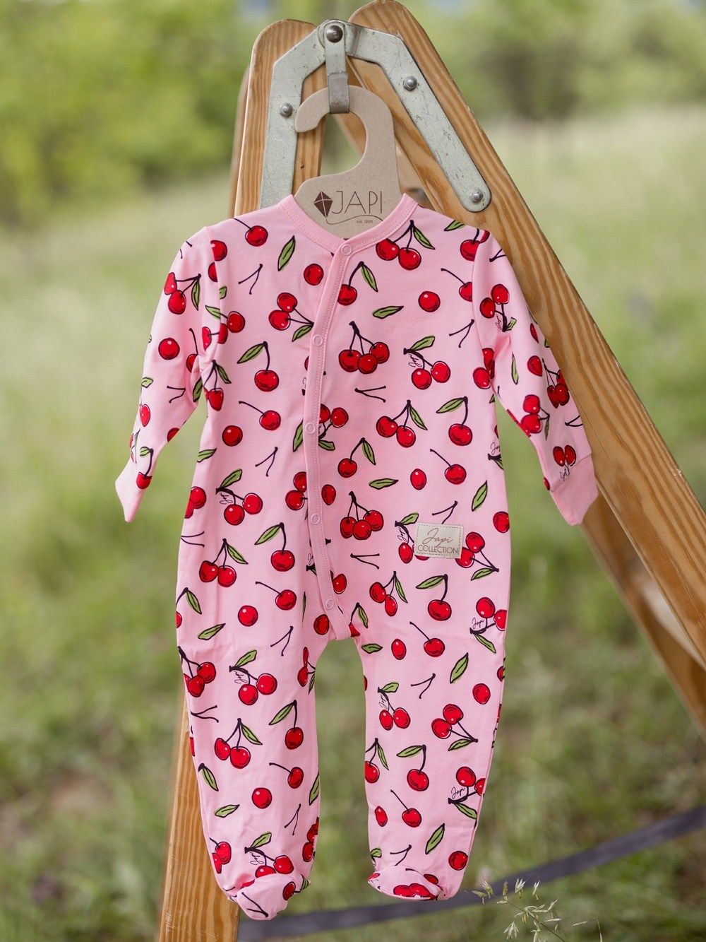 We have prepared a beautiful fresh collection of cherries for your little ones. This overall is also a beautiful piece in a girl's wardrobe. A practical piece that moms also use to sleep for a baby. Unfastening with zippers is very comfortable even when changing a baby. You really liked our proven cut. Rejoice your eyes by looking at your love in these beautiful overalls – they will be just kissable.
