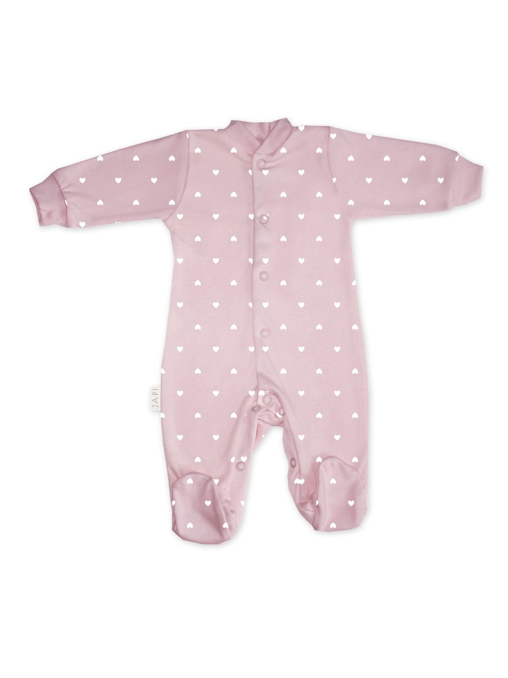 The Infant overall MINI provides full coverage and warmth for your baby during cooler days. Full-length fastenings make quick clothing changes easy. The overall is available in soft pastel shades with heart prints.