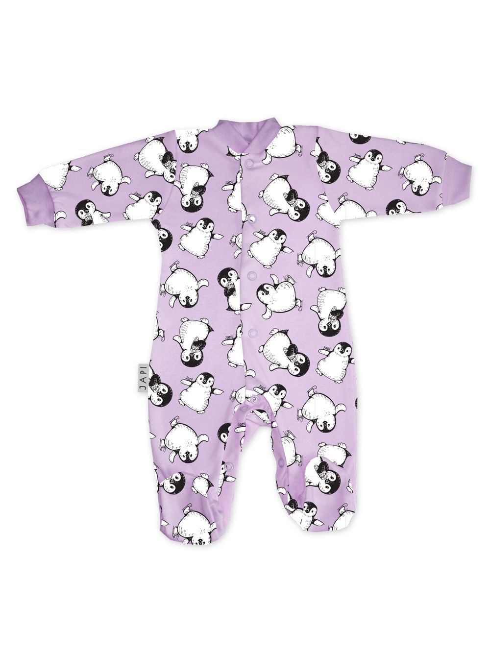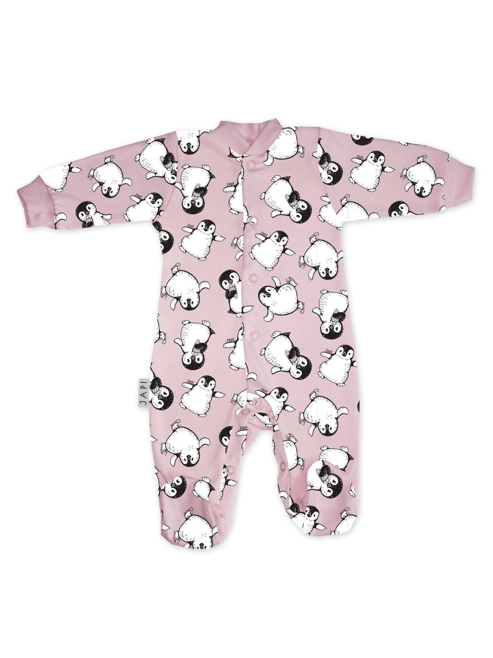 The comfortable PINGUINE sleeping onesie is a great choice for colder nights. Made from soft, breathable material that keeps your child warm and cozy throughout the night. The onesie is designed for easy dressing and undressing, thanks to the practical front closure. The playful penguin motif will captivate children and give them a joyful feeling before bedtime. This onesie is available in various color combinations with a high-quality print that stays vibrant even after multiple washes. A perfect addition to your baby's nighttime routine.