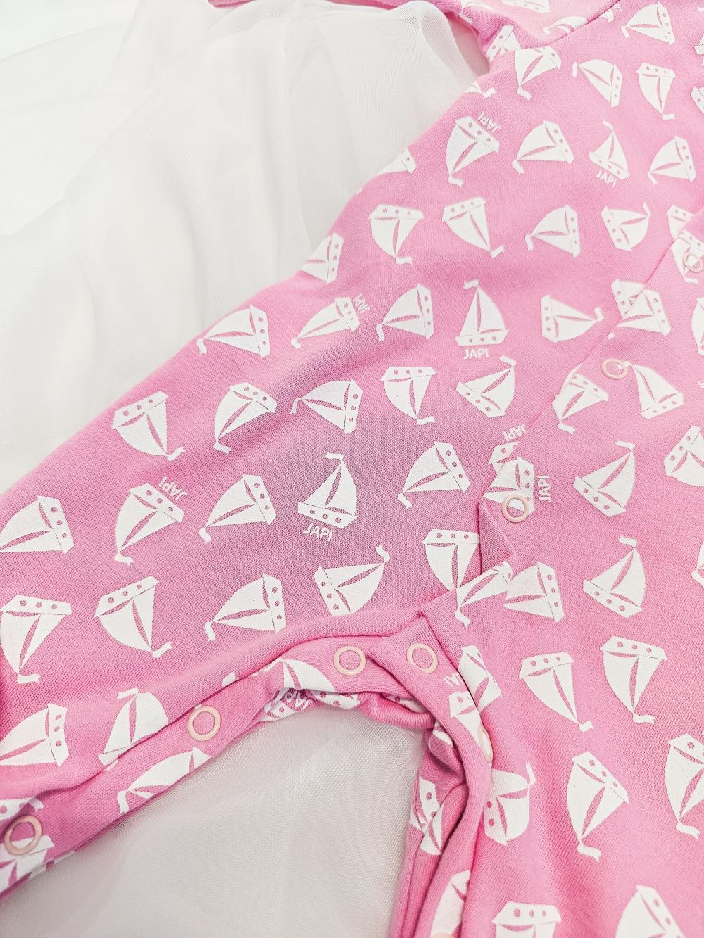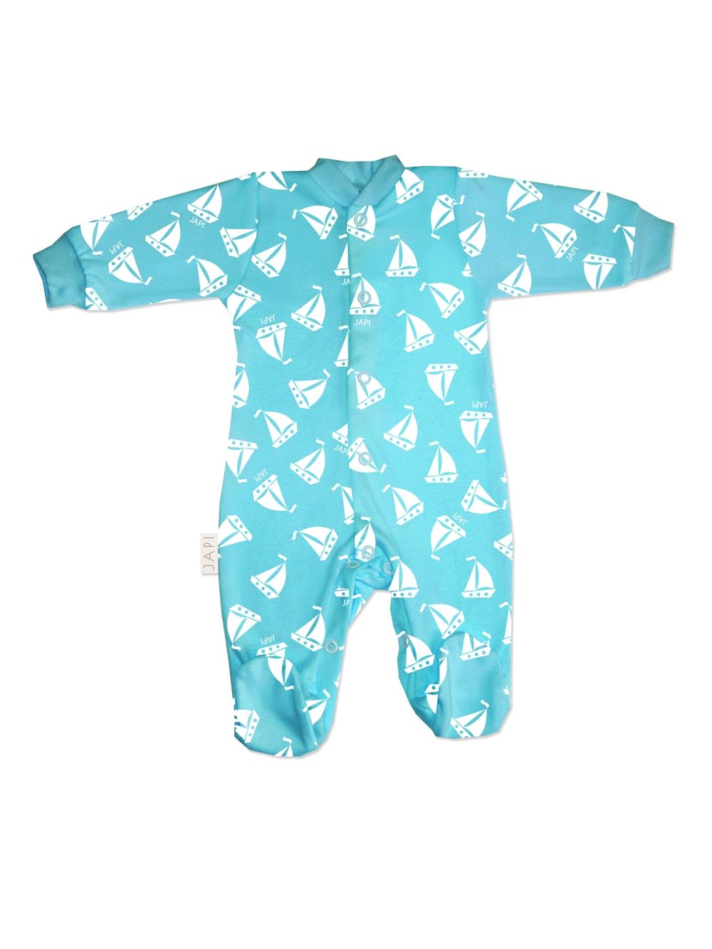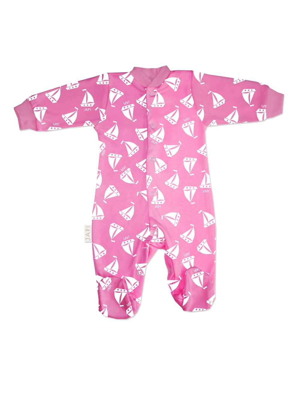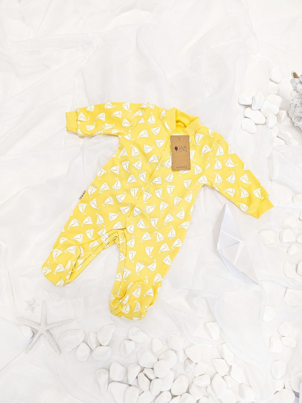 The baby overall with boats SAILBOAT is ideal for cooler days. Made from soft cotton, it provides warmth and comfort. Simple snap closures make for quick dressing. Available in blue, pink, and yellow. Ideal for everyday wear and sleep. A great addition to every child's wardrobe, combining quality and style.