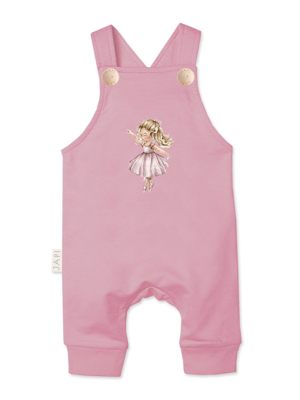 Girls’ dungaree sweatpants DOLL are an adorable and practical piece for every little princess’s wardrobe. The front is decorated with a delicate illustration of a girl in a dress, giving the model a fairy-tale and playful touch. The pants feature a comfortable drop-crotch cut that ensures freedom of movement and all-day comfort. The dungaree straps fasten with buttons, making dressing and undressing easier. The bottom of the legs is finished with elastic cuffs, ensuring the pants stay in place. Made from soft and pleasant cotton, gentle on sensitive children’s skin. Available in two tender shades – beige and pink – that can be easily combined with T-shirts or hoodies from the DOLL collection.