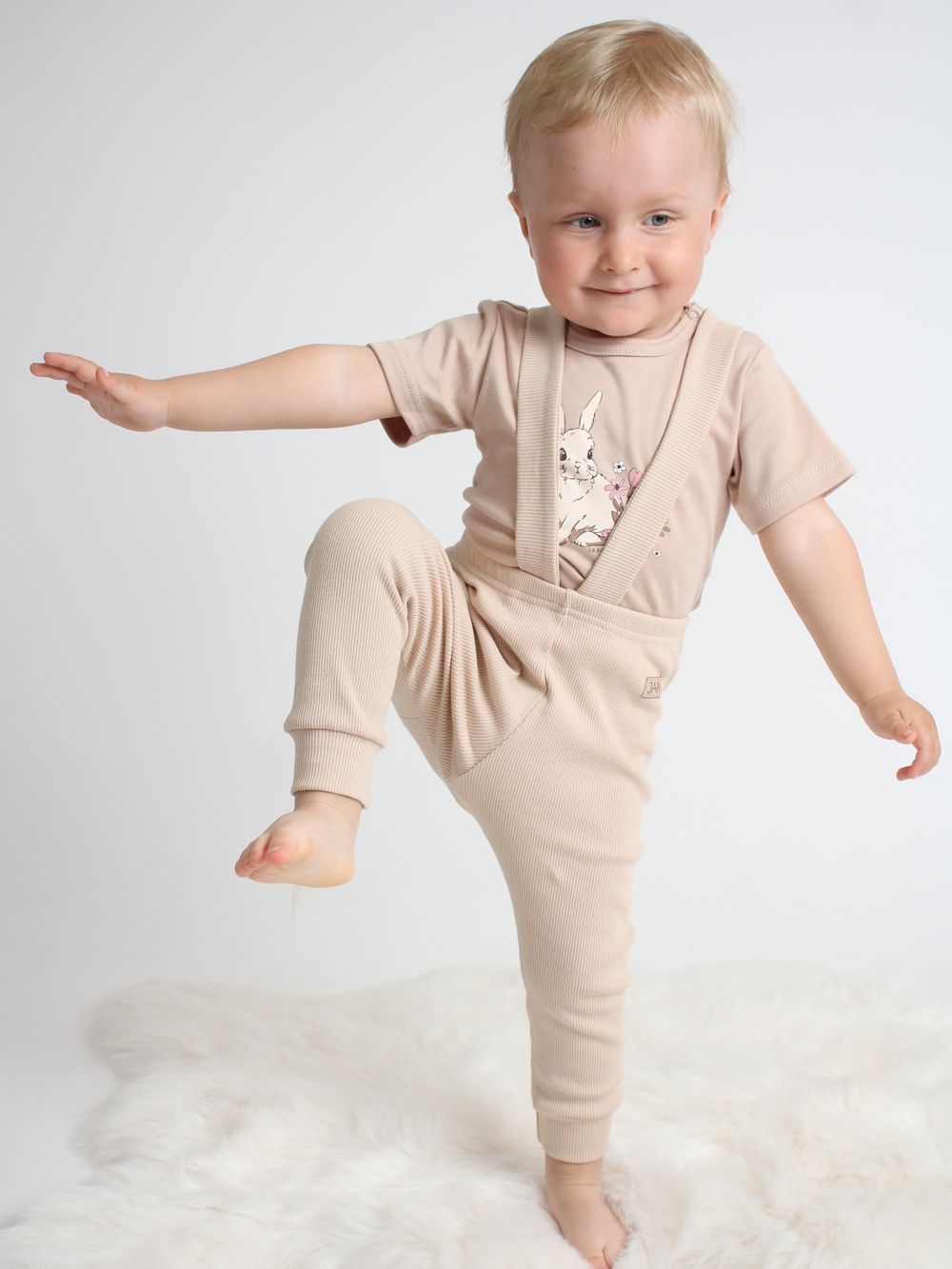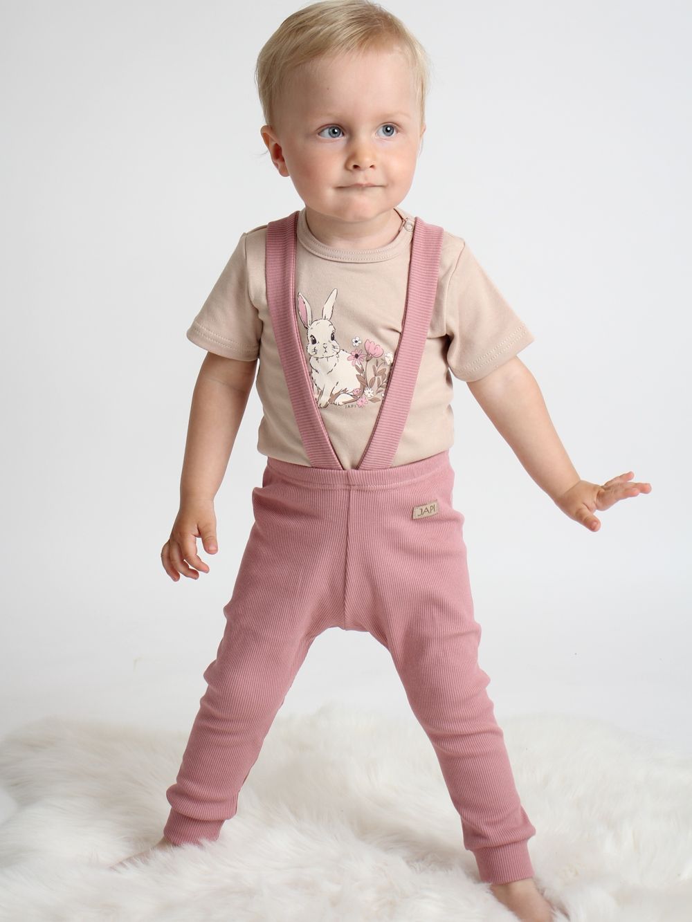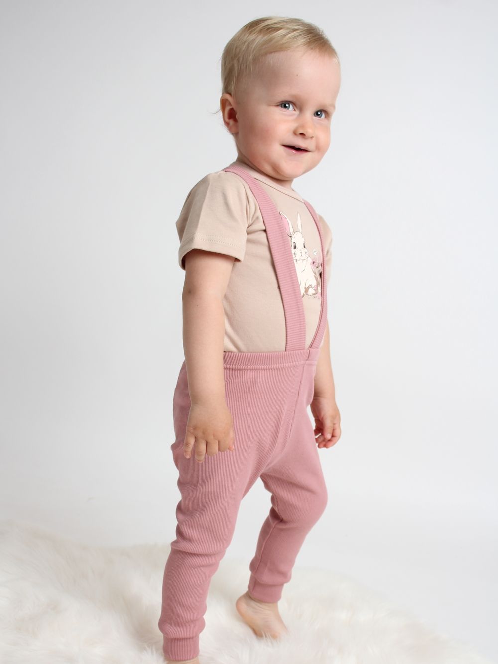 Pants with braces are made of 100% cotton material with ribbing. They have a very comfortable cut and together with a children's shirt or bodysuit, you can create a matching set of clothing.