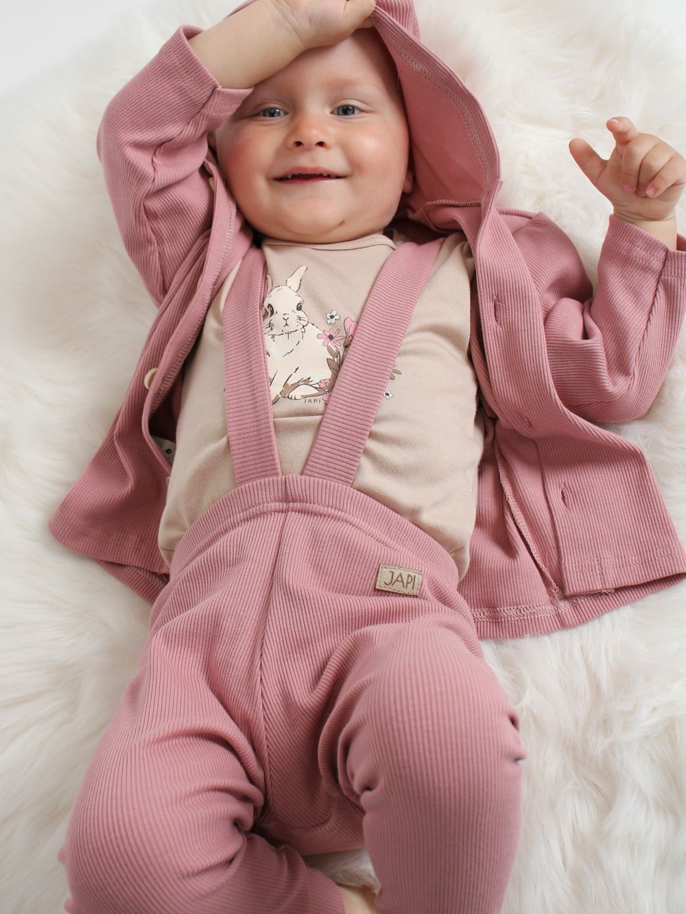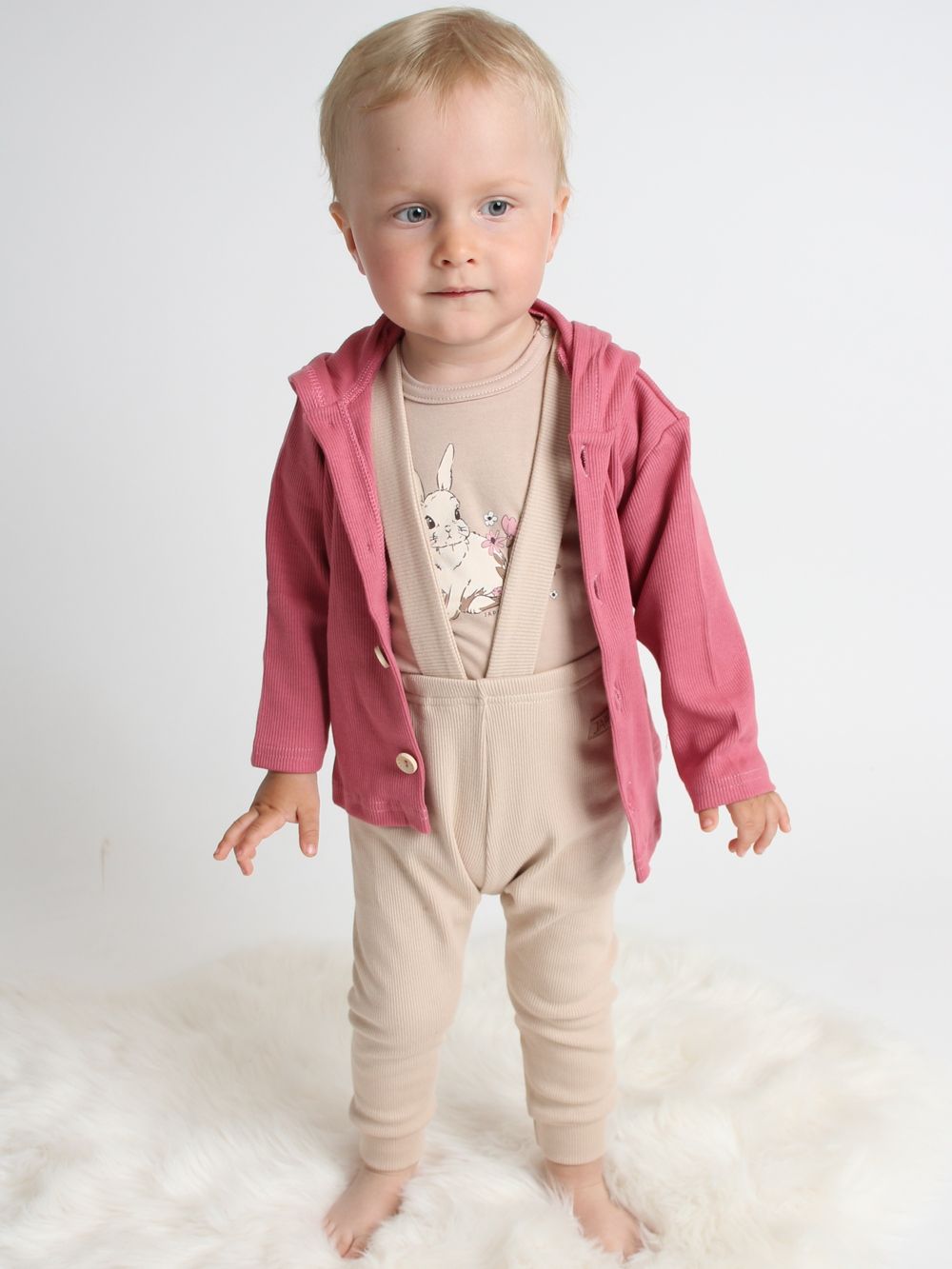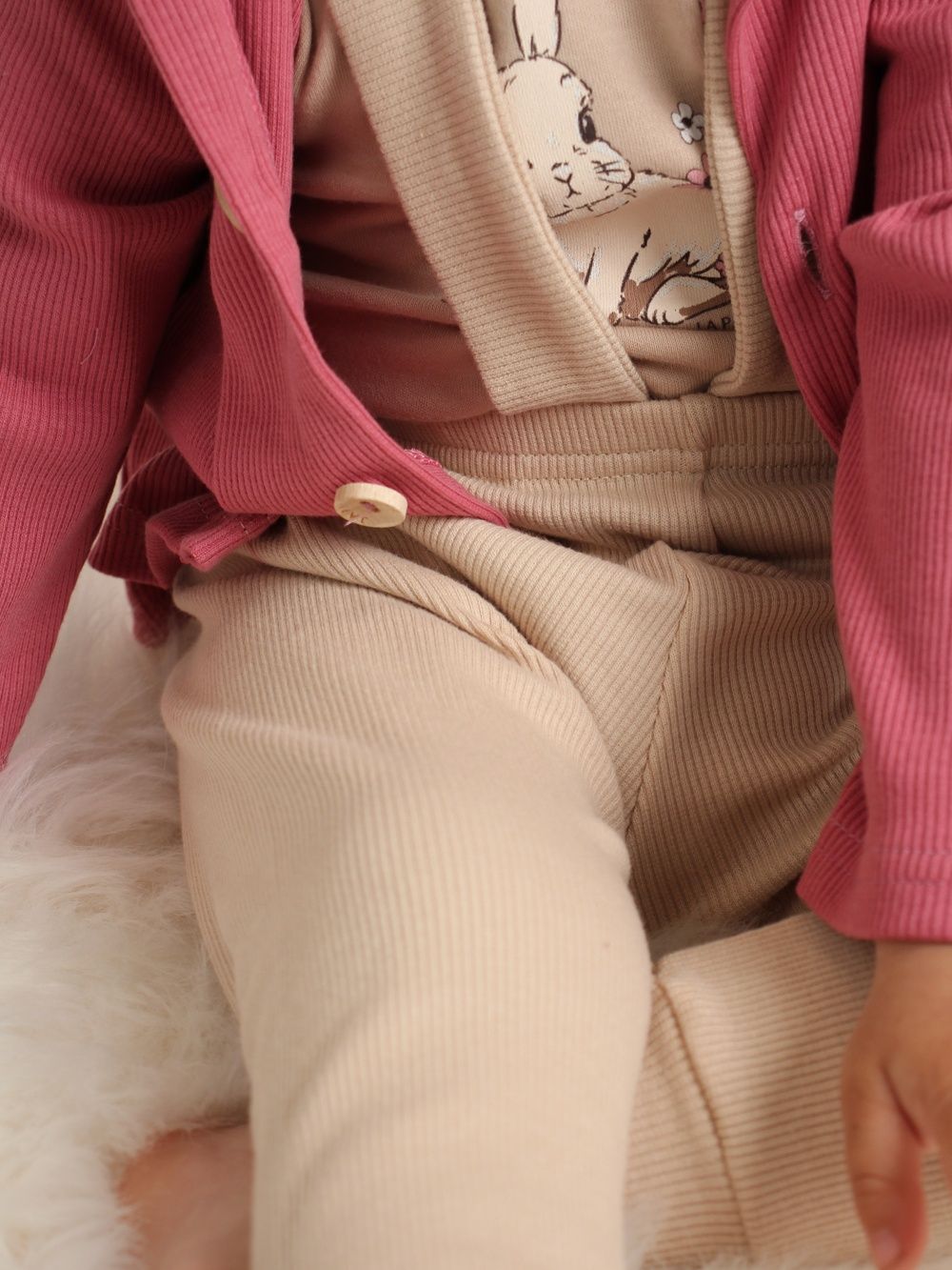Pants with braces are made of 100% cotton material with ribbing. They have a very comfortable cut and together with a children's shirt or bodysuit, you can create a matching set of clothing.