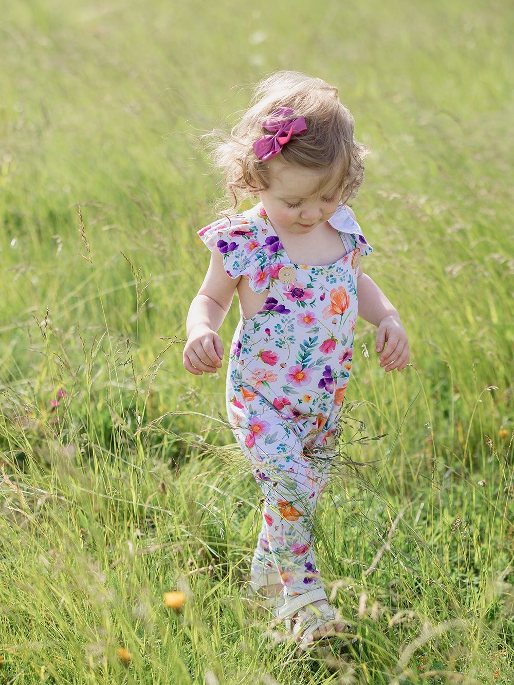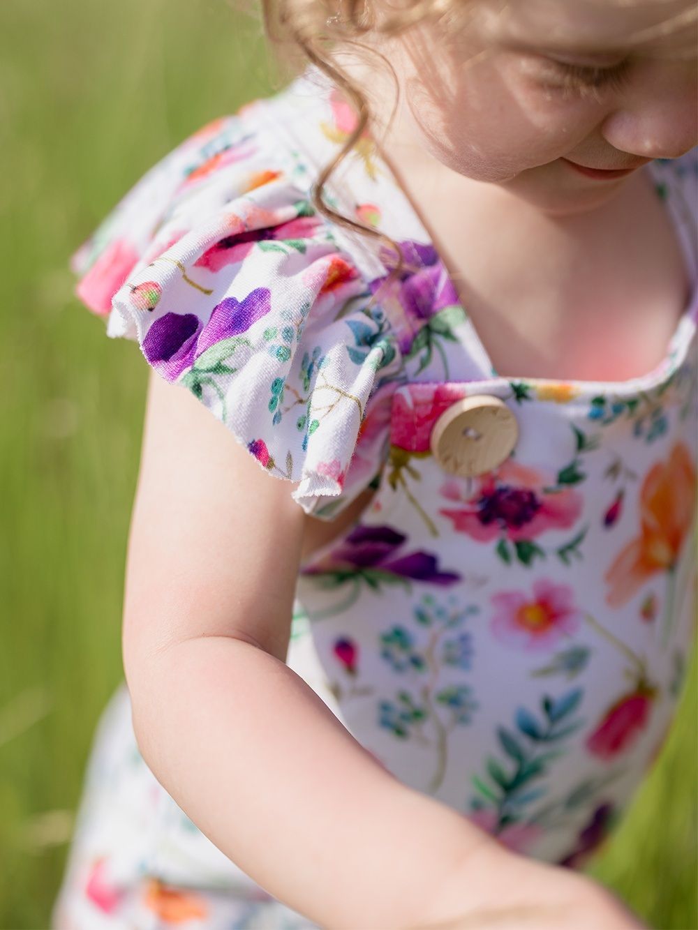 The sweatpants have fastening with wooden buttons braces. They have frills on the braces and therefore appear very gentle. Complement them with a plain children's bodysuit or t-shirt and you have a beautiful outfit for your little girl.