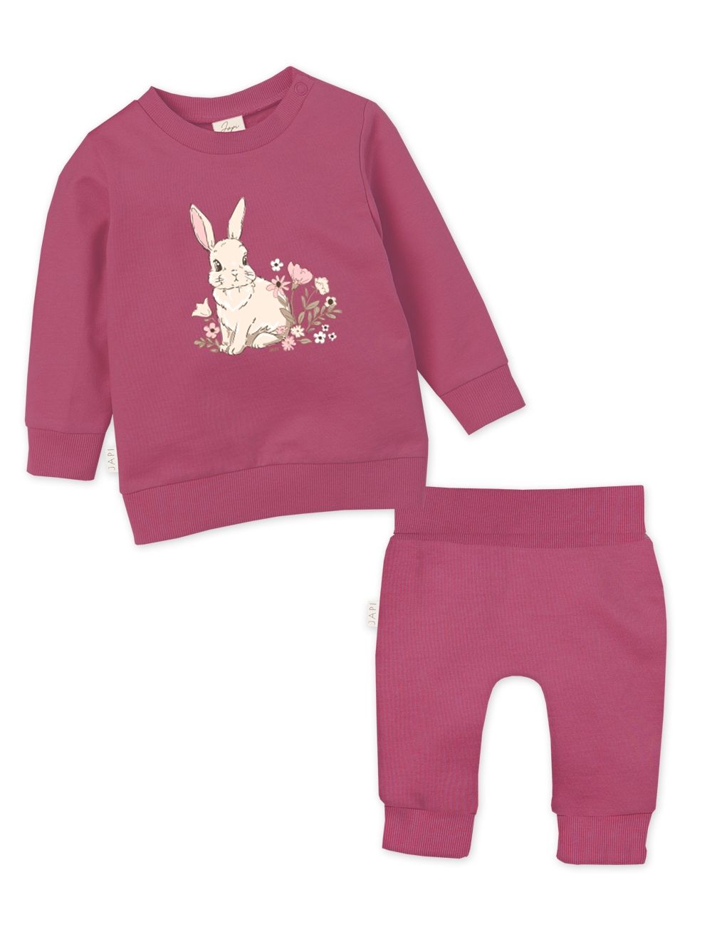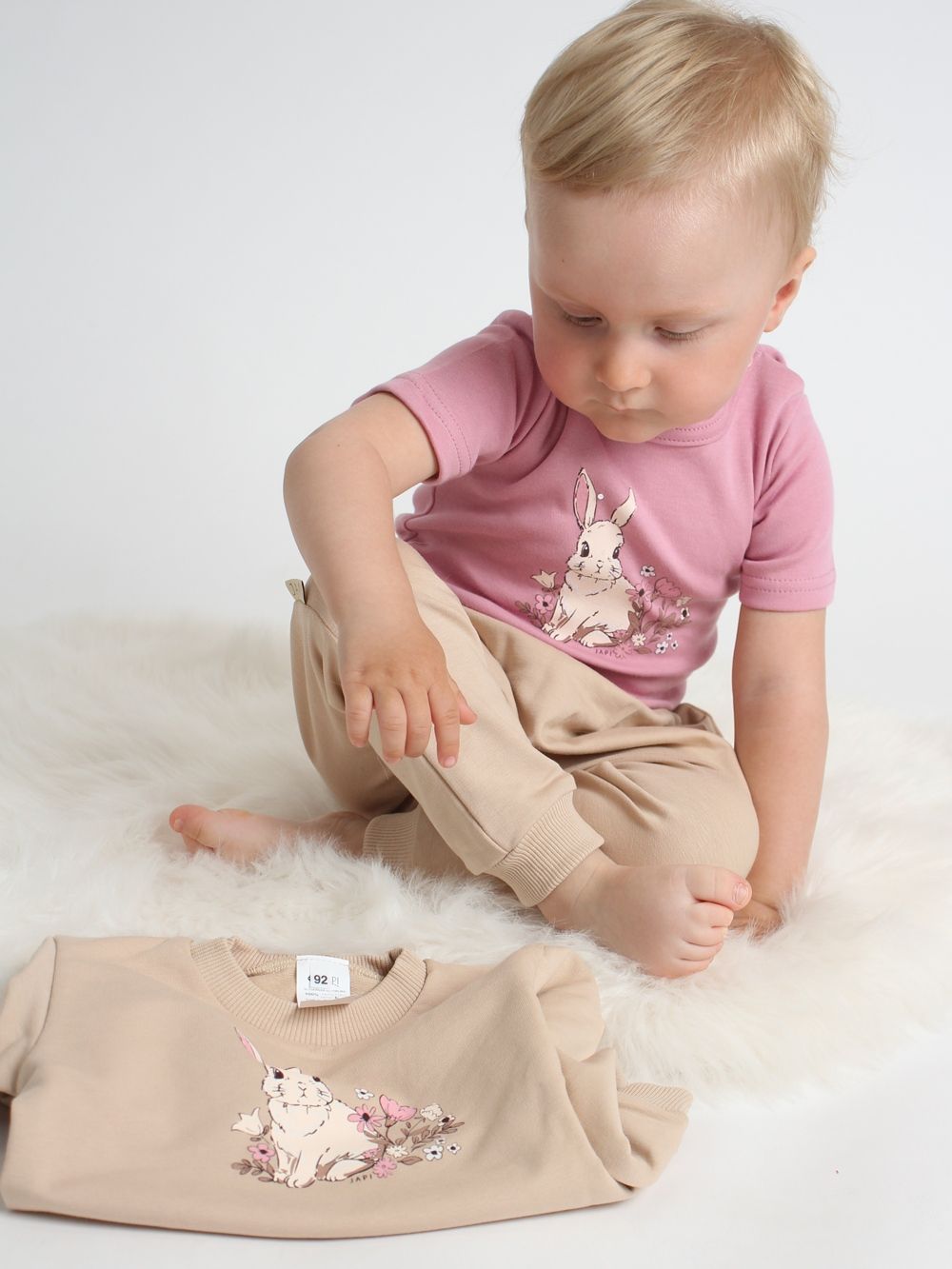 This baby set includes a cozy sweatshirt and pants, making it ideal for everyday wear. Crafted from soft cotton for all-day comfort, the sweatshirt features an adorable bunny motif for a playful look. The pants have an elastic waistband for a perfect fit and maximum freedom of movement. A great choice for spring and cooler days.