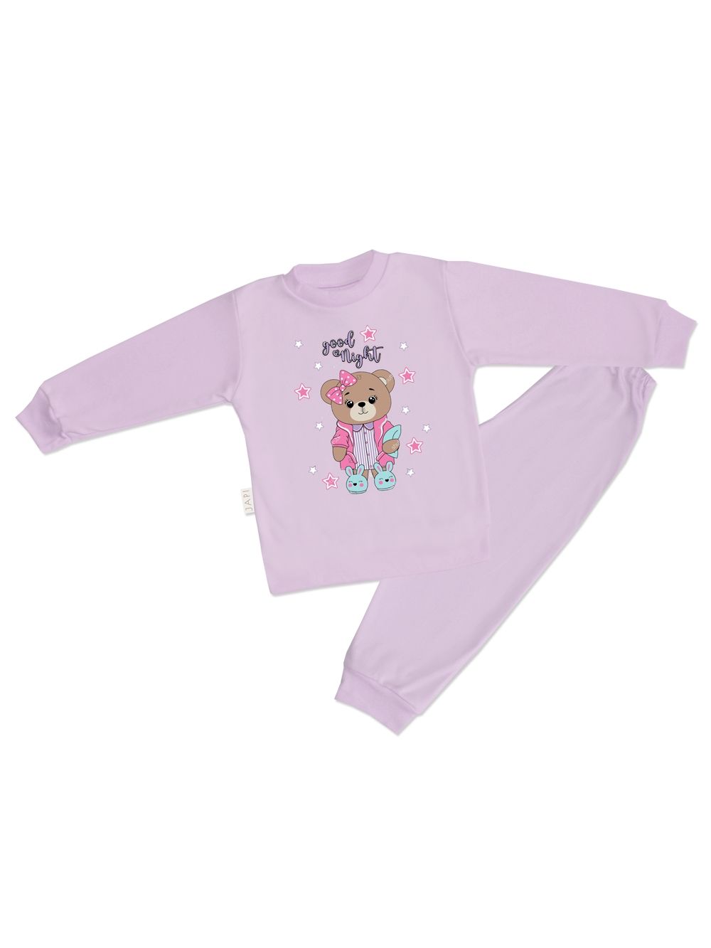 The comfortable and stylish girls' pyjamas GOOD NIGHT are a perfect choice for a peaceful and quality sleep. The top features a sweet “Good Night” print, creating a cozy bedtime atmosphere. Made of soft cotton, the pyjamas provide maximum comfort and breathability throughout the night. Ideal for everyday sleep and relaxing weekend mornings at home. The GOOD NIGHT girls’ pyjamas make a wonderful gift for little girls.