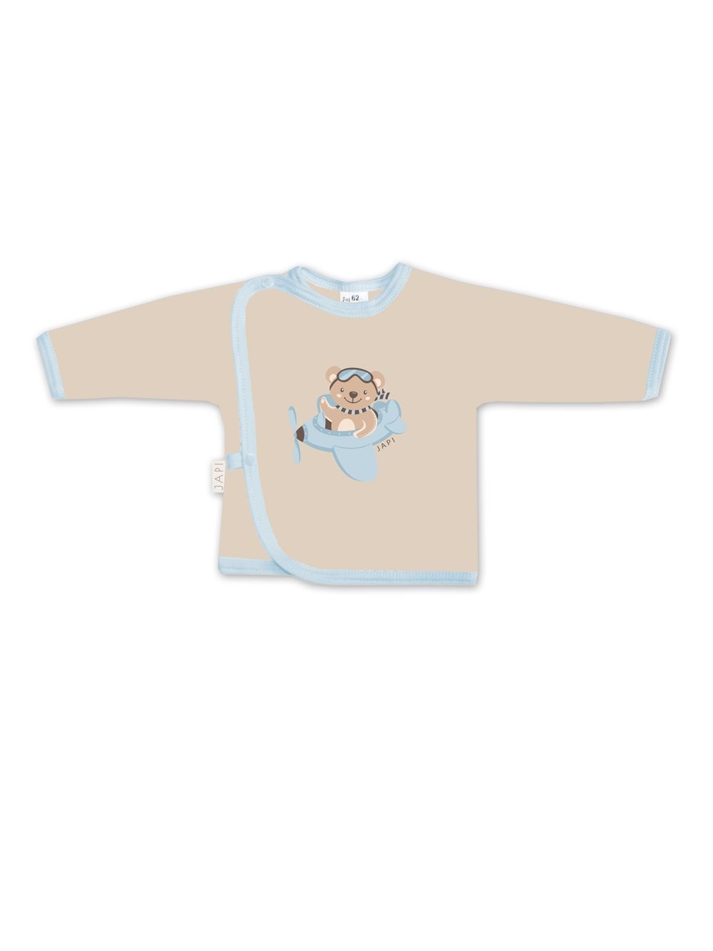 The Cotton Baby Shirt PILOT is ideal for soft baby outfits. Made from quality cotton, the shirt is soft to the touch and breathable, ensuring comfort for your little one all day long. The snap closure on the front makes dressing easier. This piece is also adorned with a cute bear in a plane motif, which perfectly matches the rest of the collection.