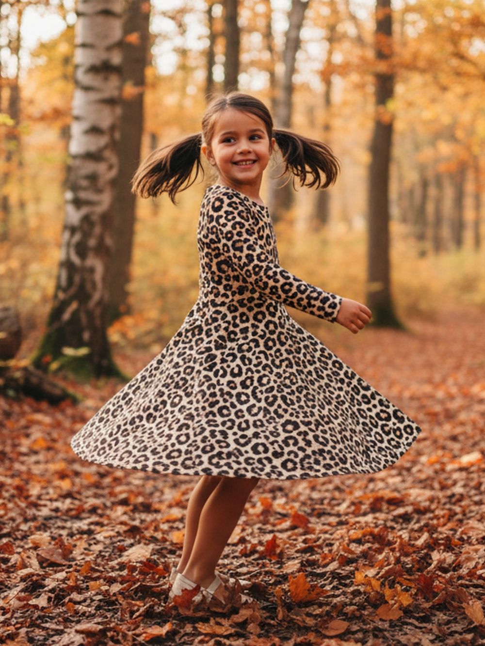This adorable and stylish kids' leopard dress is the perfect choice for little fashionistas. Made from soft and cozy fabric, it ensures all-day comfort. Long sleeves provide warmth in cooler weather, while the slightly flared cut allows freedom of movement. The leopard design adds a playful and trendy touch. This girls' dress is great for everyday wear and special occasions.