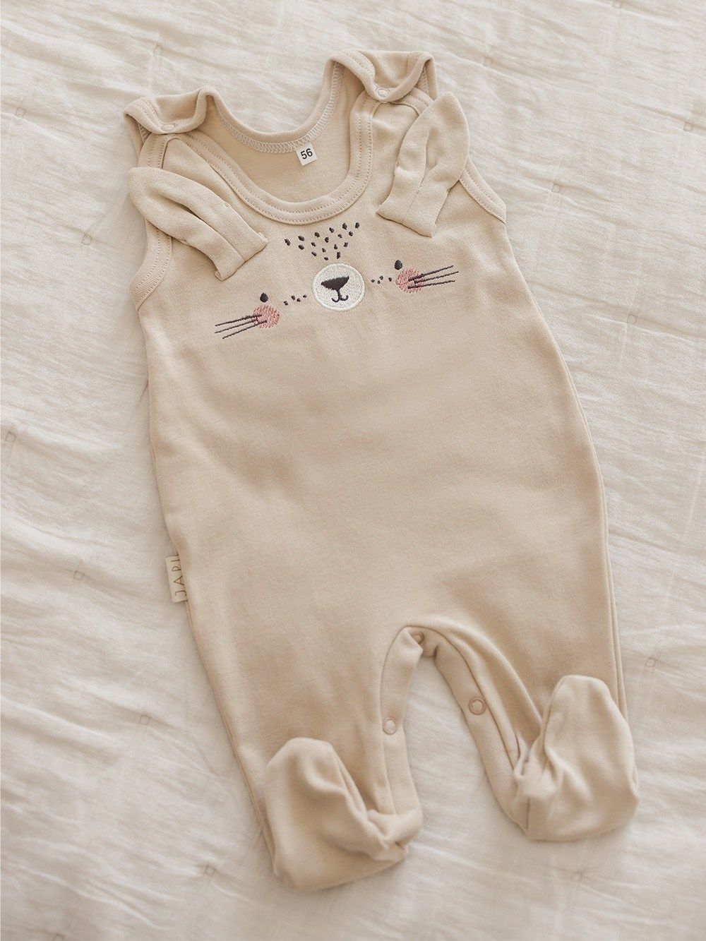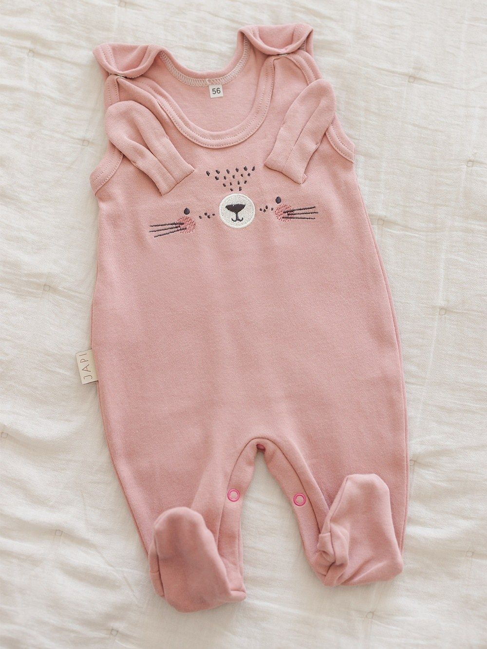 The footies have a high-quality edging. In addition, these footies have beautiful details in the form of a bunny face and 3D ears.