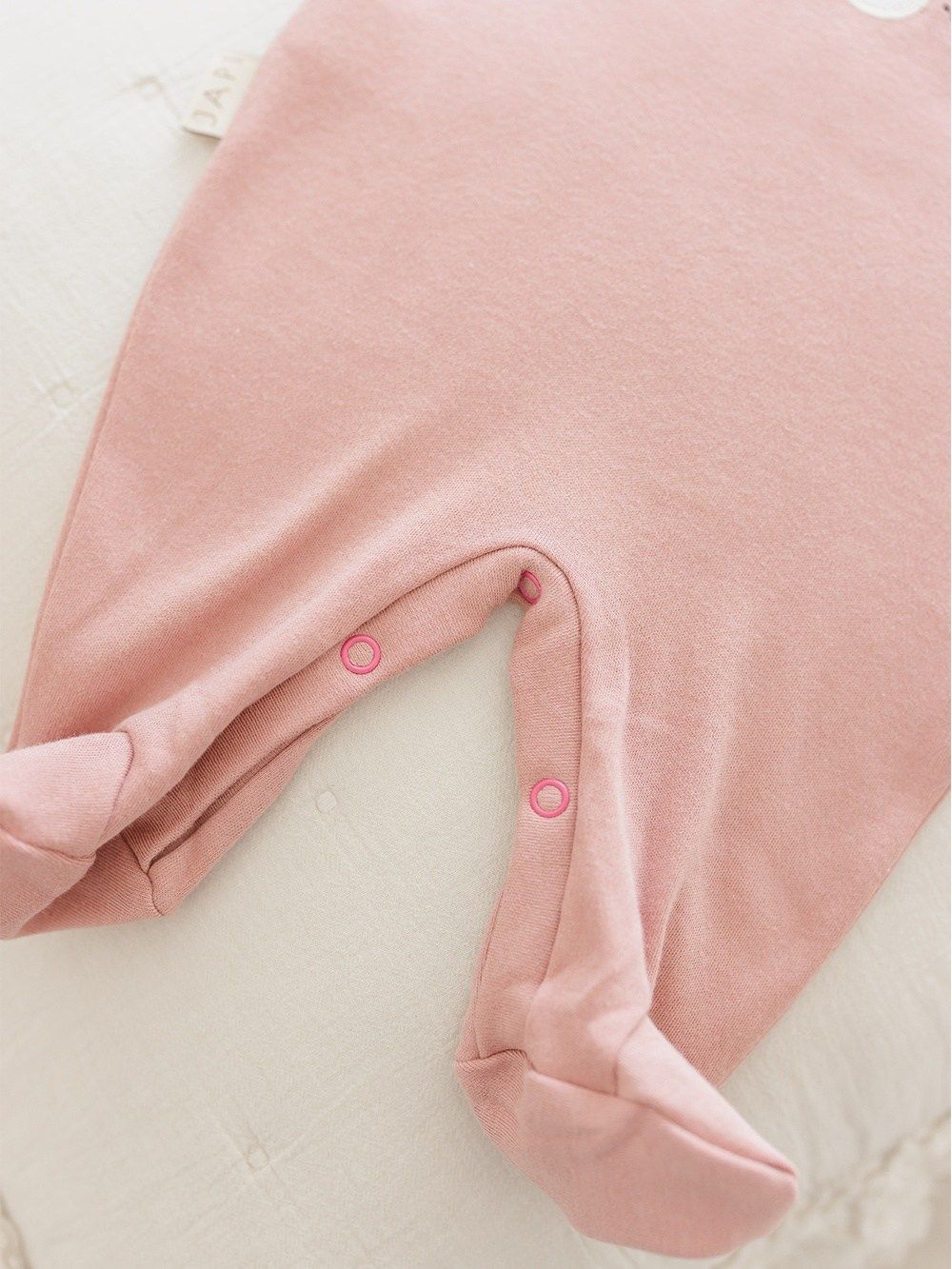 Pink and cream footies made of 100% cotton with a certificate are suitable for the little ones. Footies are a popular piece of clothing for children. Our Footies have a proven comfortable cut. They fasten on the shoulder straps and between the legs for more comfortable dressing and changing.