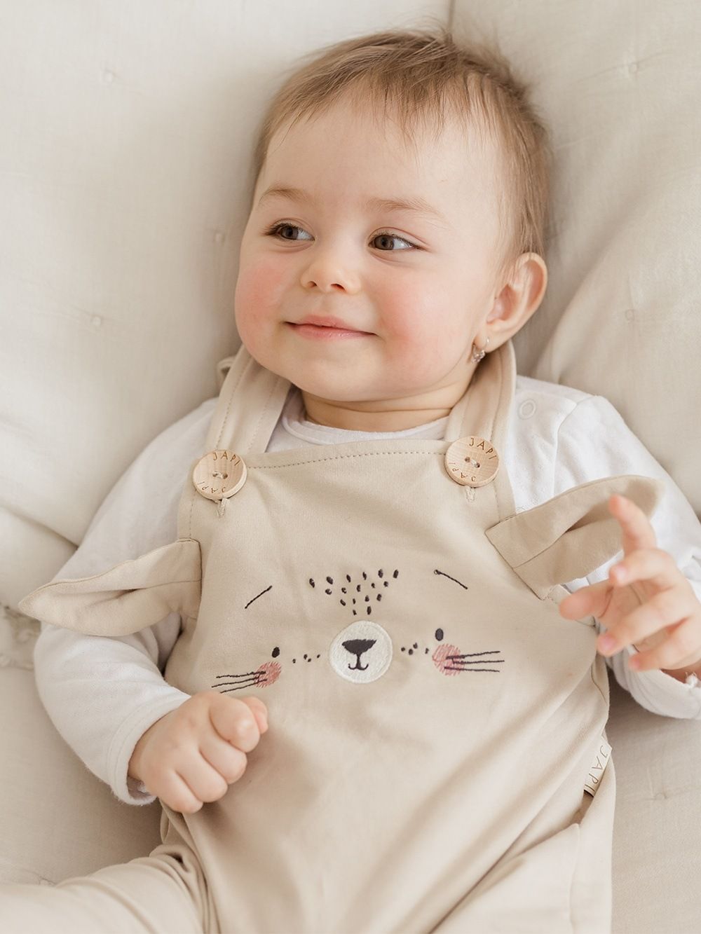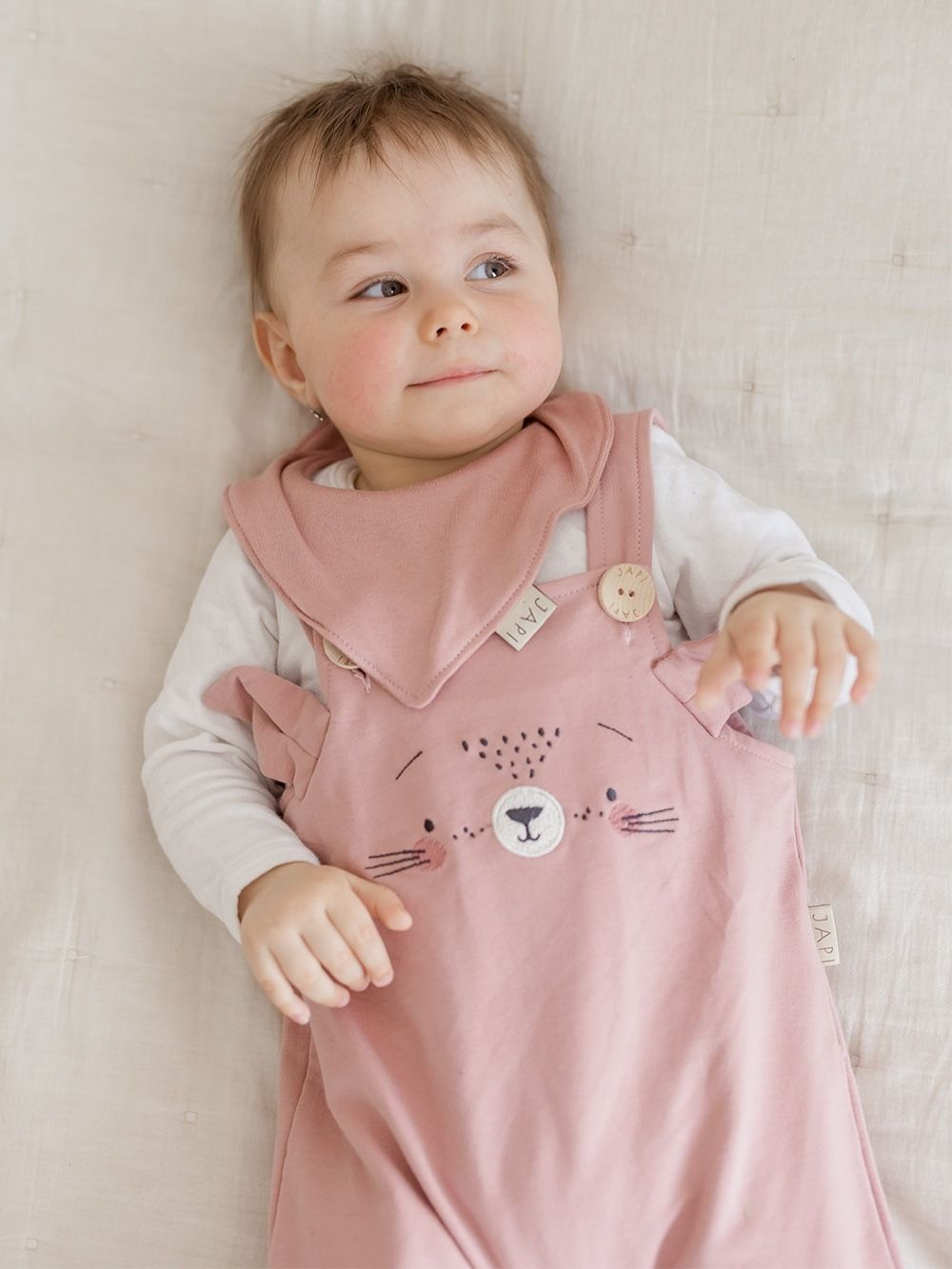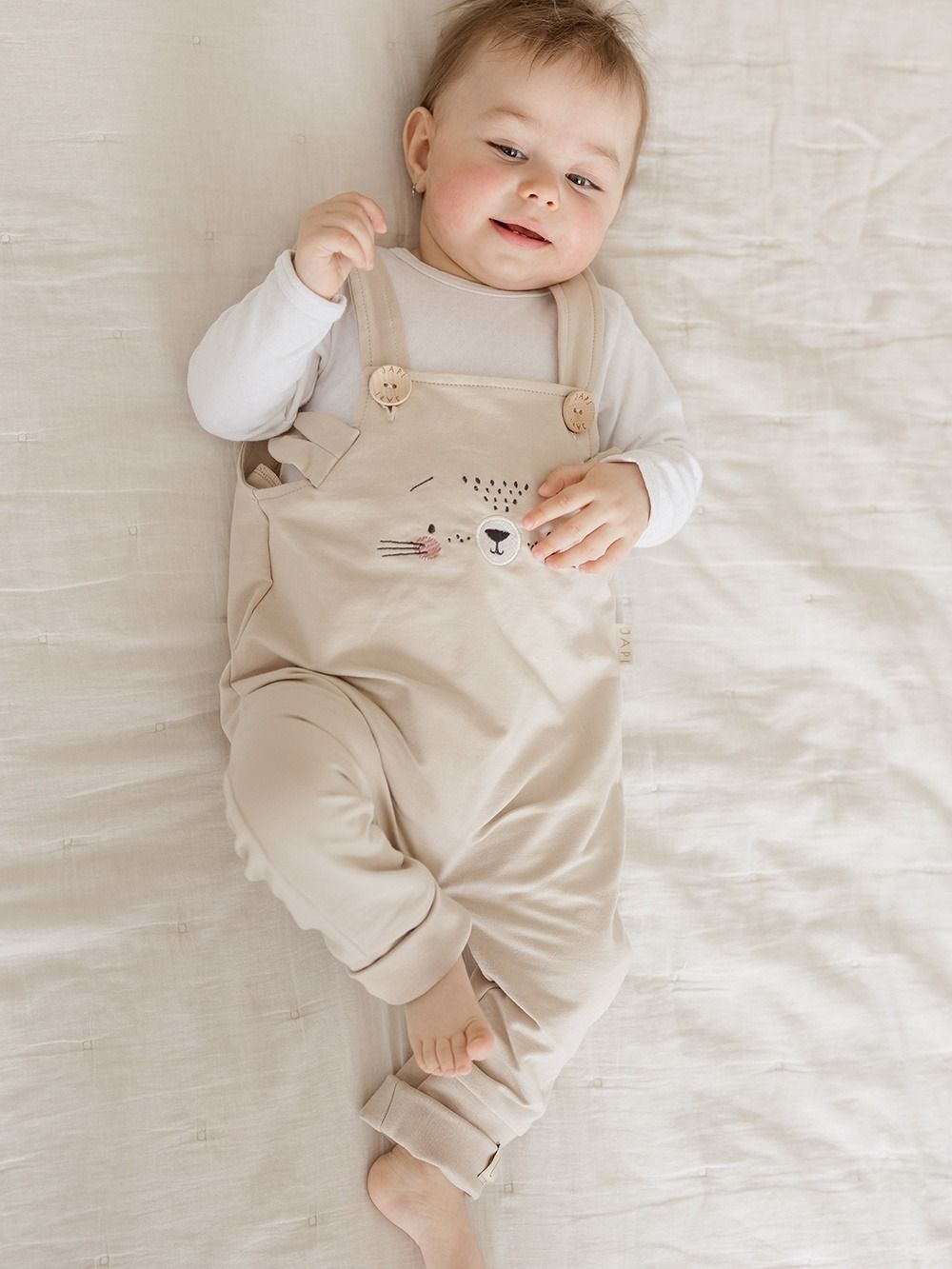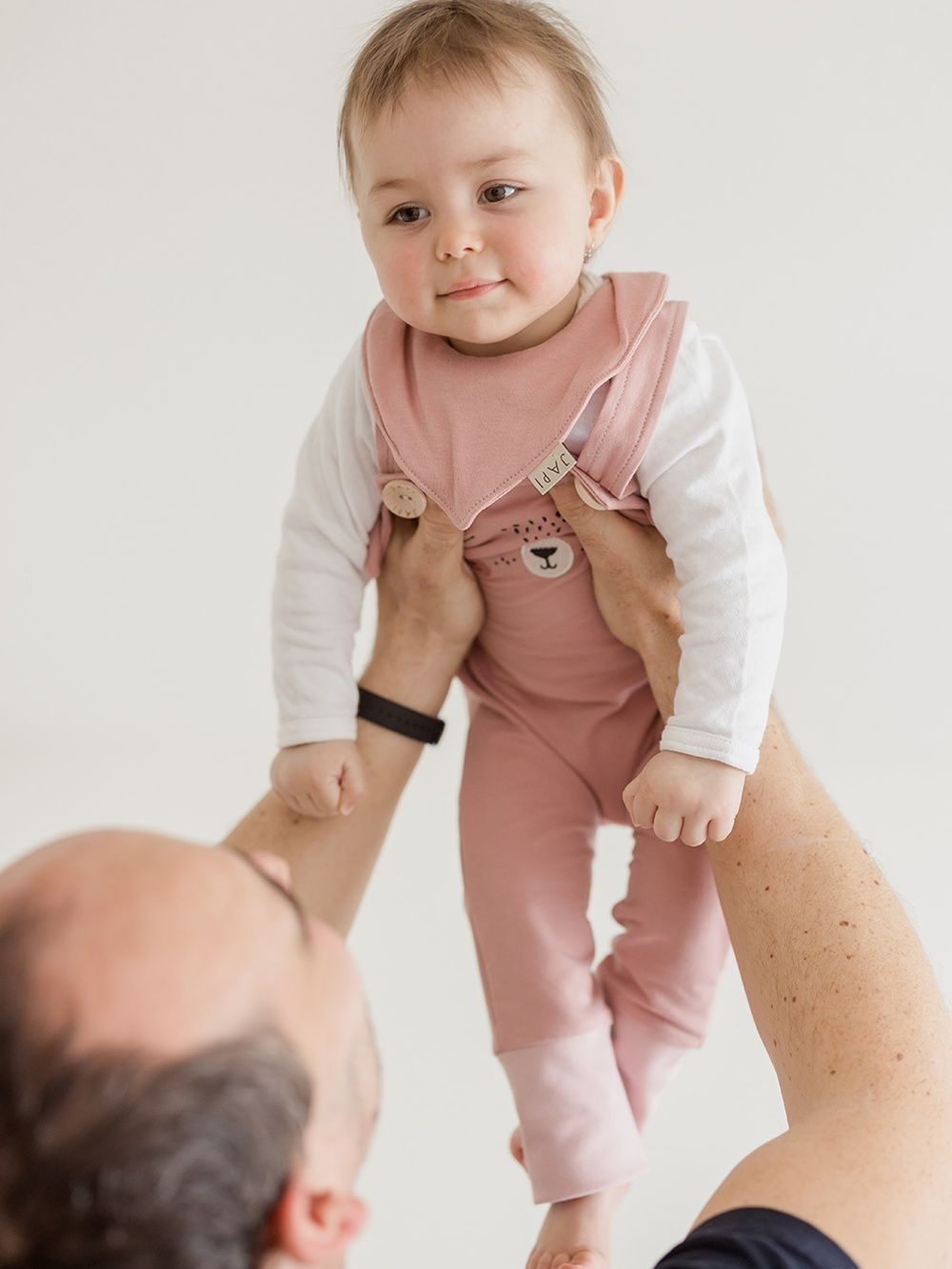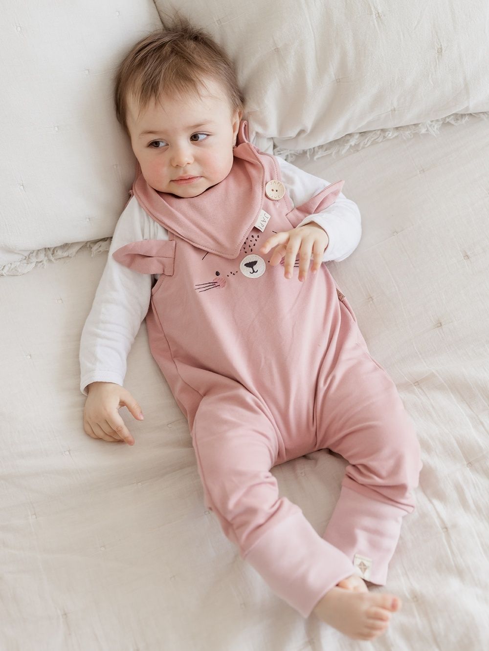 In this collection of ours, you can find them in pink and beige. You can complement them with a one-colored bodysuit or T-shirt. You can use it at home and on a walk, at a family celebration, but also when visiting the doctor.