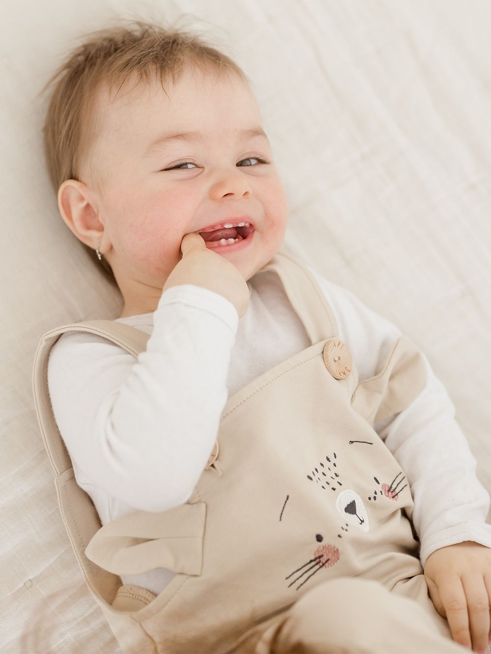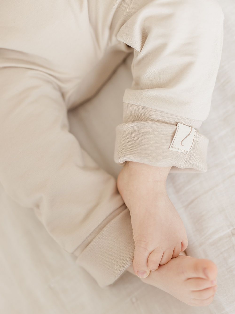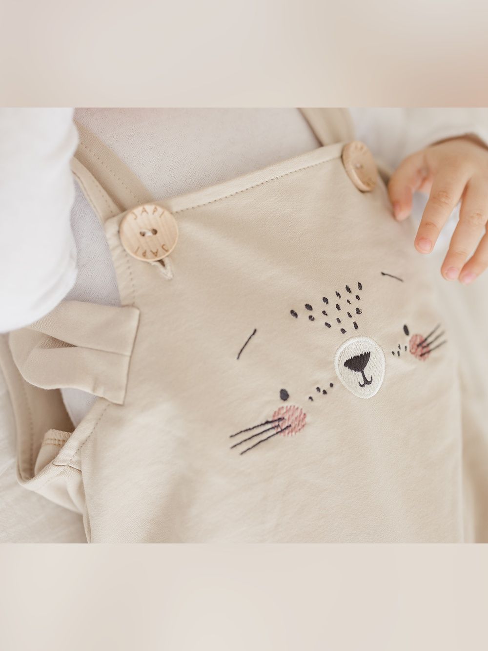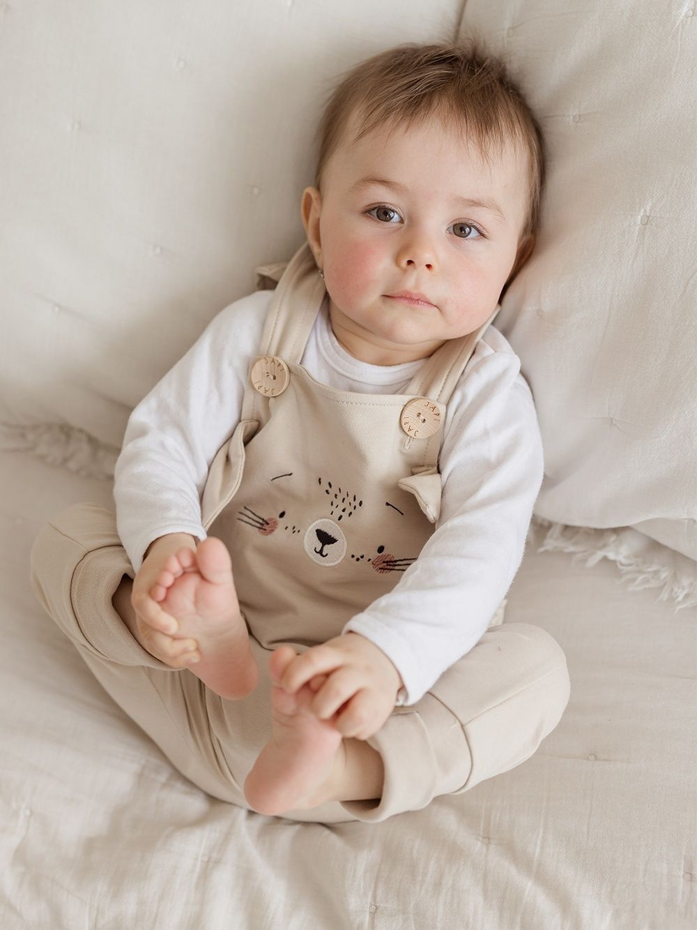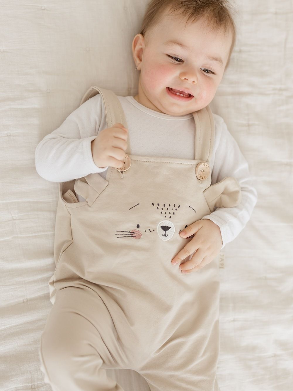 In this collection of ours, you can find them in pink and beige. You can complement them with a one-colored bodysuit or T-shirt. You can use it at home and on a walk, at a family celebration, but also when visiting the doctor.